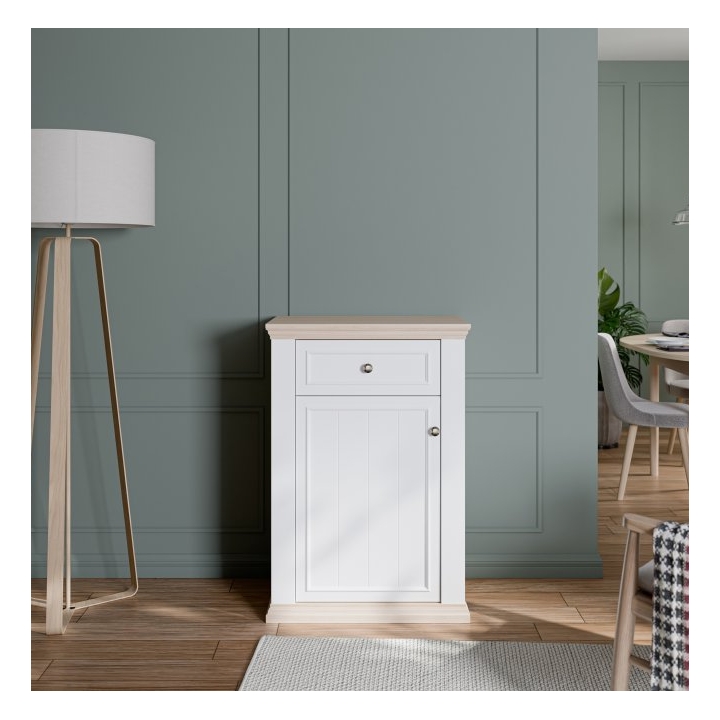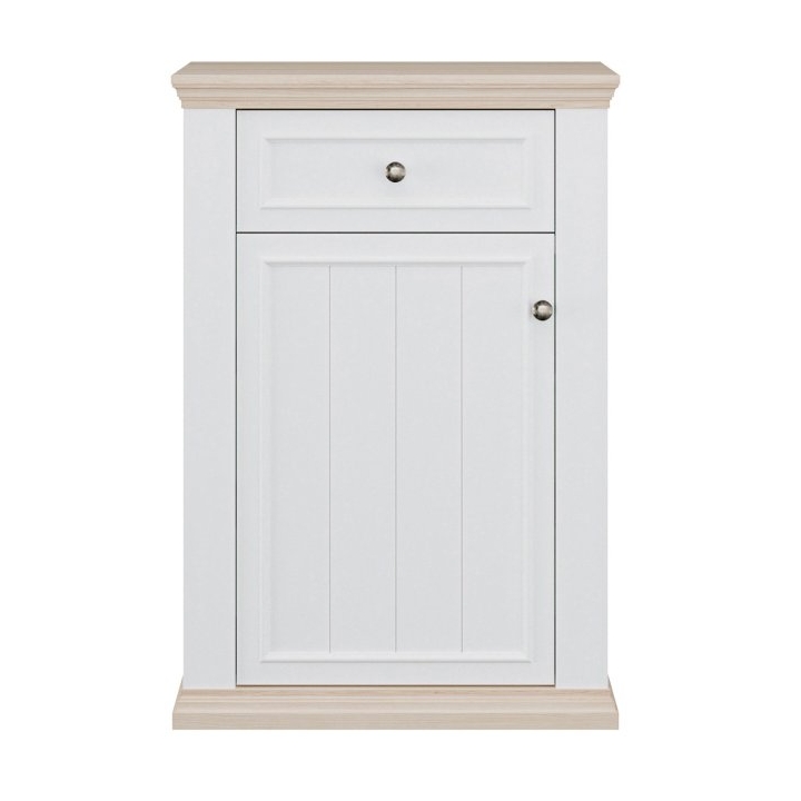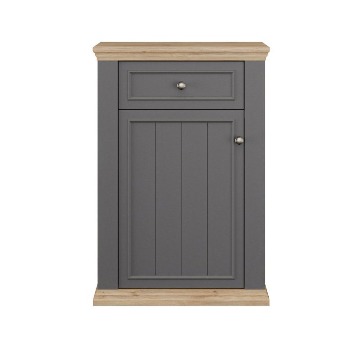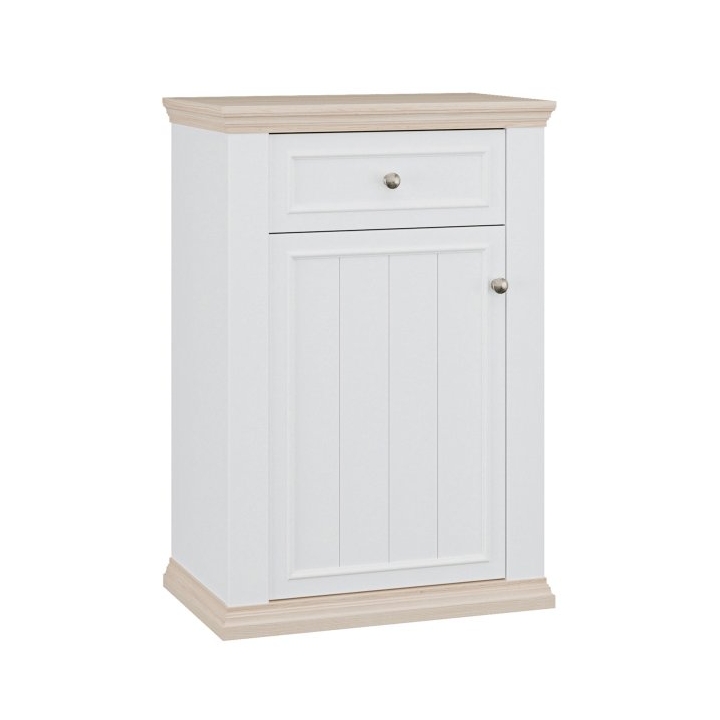 Dzięki swojej wysokości szafka może pełnić również funkcję mebla pomocniczego, a jej górny blat stanowi miejsce na odłożenie torebki lub ustawienie dekoracji.