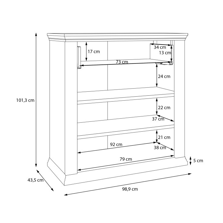 Szafka na buty z kolekcji Pontypool to mebel zaprojektowany z myślą o organizacji przedpokoju i utrzymaniu w nim porządku. Ma 99 cm szerokości, 101,3 cm wysokości oraz 43,5 cm głębokości.