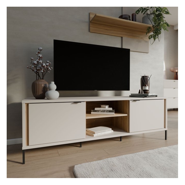 closeSzafka RTV Seravel o szerokości 158,8 cm, wysokości 52 cm oraz głębokości 41,5 cm bazuje na zestawieniu kaszmirowych frontów z elementami w odcieniu dębu mauvella.