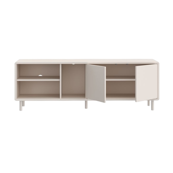 closeSzafka RTV Playly o szerokości 161,6 cm, wysokości 55 cm oraz głębokości 42 cm została zaprojektowana w jednolitej, kaszmirowej kolorystyce. Mebel osadzony jest na wysokich nóżkach, które ułatwiają zachowanie czystości w strefie multimedialnej. Minimalistyczna forma pozbawiona tradycyjnych uchwytów sprawia, że szafka prezentuje się nowocześnie i nie przytłacza wnętrza salonu czy sypialni.