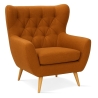 Model opiera się na drewnianych nóżkach o wysokości 18 cm, wybarwionych w odcieniu Dąb Wosk, co nadaje bryle lekkości oraz ułatwia utrzymanie porządku w przestrzeni pod siedziskiem. Solidna podstawa gwarantuje stabilność i trwałość konstrukcji, dzięki czemu fotel zachowuje swoje walory estetyczne przez długie lata. Całość tworzy spójną, dopracowaną formę, która wpasowuje się w różnorodne aranżacje wnętrz.