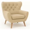 Stabilną podstawę fotela tworzą drewniane nogi o wysokości 18 cm, wybarwione w odcieniu Dąb Wosk. Zastosowanie tego rodzaju konstrukcji nadaje meblowi wizualnej lekkości, a jednocześnie ułatwia utrzymanie czystości pod siedziskiem. Solidna podstawa zapewnia trwałość i pewne oparcie, co przekłada się na długie użytkowanie bez utraty estetyki.