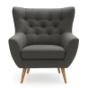Model osadzony jest na drewnianych nóżkach o wysokości 18 cm, wybarwionych w odcieniu Dąb Wosk, które dodają meblowi lekkości i ułatwiają utrzymanie czystości pod jego powierzchnią. Solidna podstawa stanowi gwarancję trwałości i stabilności, dzięki czemu fotel zachowuje swoje walory użytkowe przez długi czas. Wysoka jakość wykonania przekłada się na niezawodność oraz zadowolenie z codziennego korzystania.