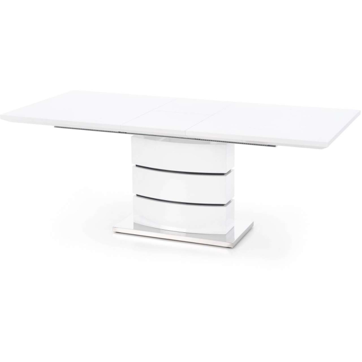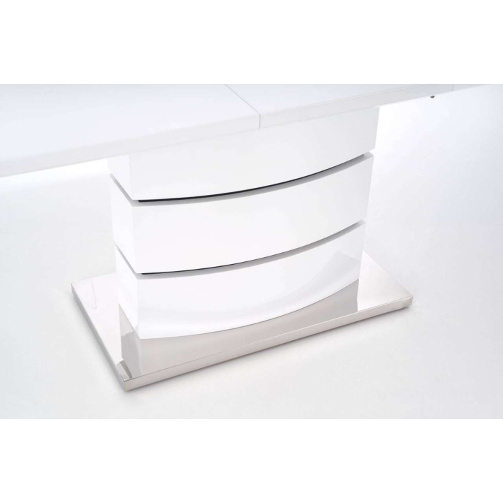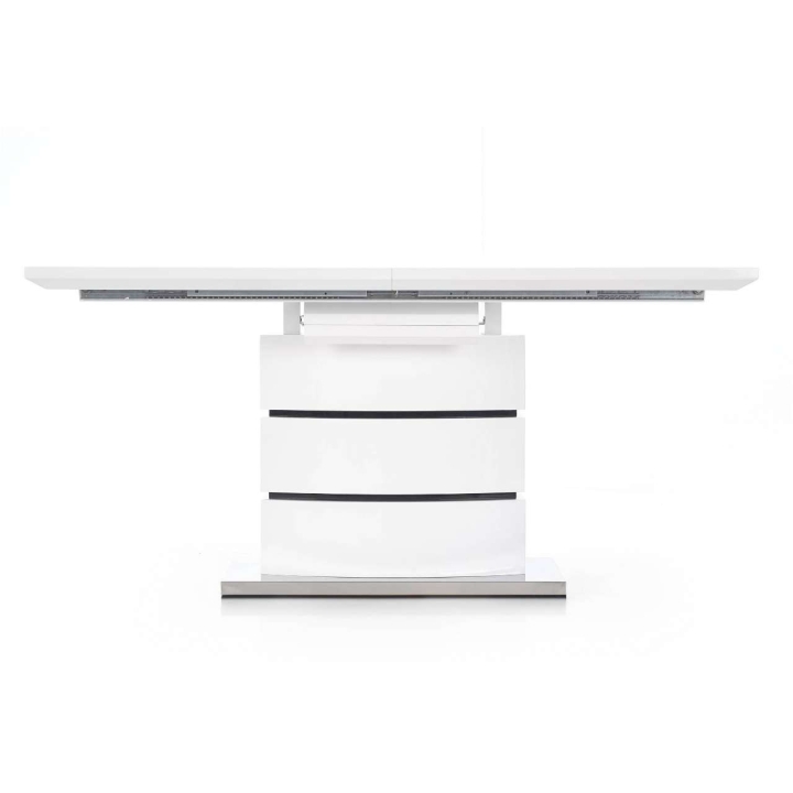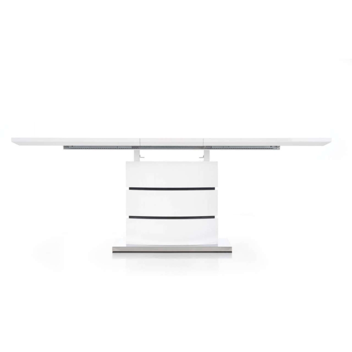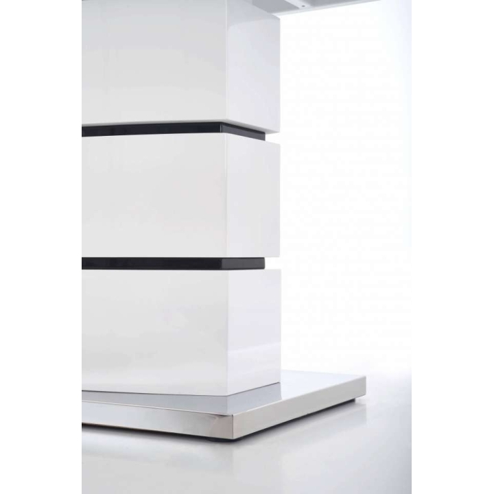 stół rozkładany, materiał: MDF lakierowany / stal nierdzewna, kolor: biały z czarnymi pasami