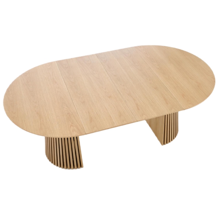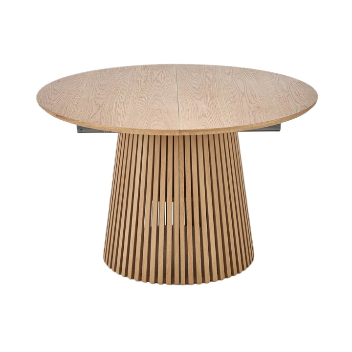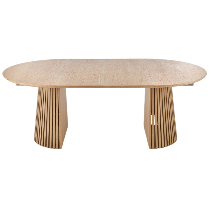 Dzięki mechanizmowi rozkładania szerokość mebla można zwiększyć aż do 210 cm, co stwarza przestrzeń dla ośmiu osób. Jest to odpowiedni wybór do pomieszczeń, w których na co dzień liczy się oszczędność miejsca, a przy specjalnych okazjach potrzebny jest obszerny blat.