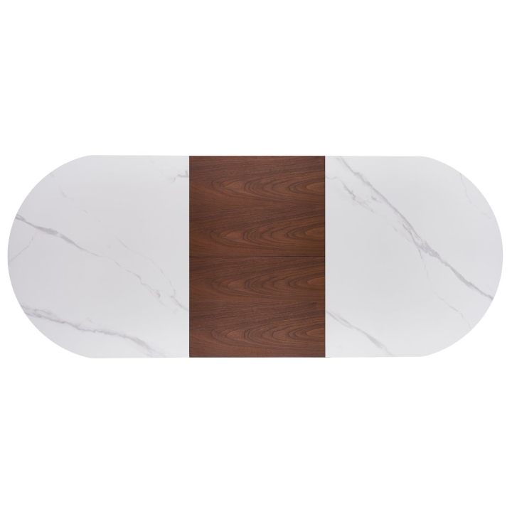 Stół Gibson charakteryzuje się owalnym blatem o szerokości 160 cm i głębokości 90 cm, co w wersji podstawowej zapewnia wygodną przestrzeń dla sześciu osób. Dzięki zastosowaniu mechanizmu rozkładania, szerokość stołu można zwiększyć do 220 cm. To rozwiązanie dedykowane przestronnym jadalniom, w których liczy się możliwość szybkiego dostosowania powierzchni blatu do aktualnych potrzeb domowników.