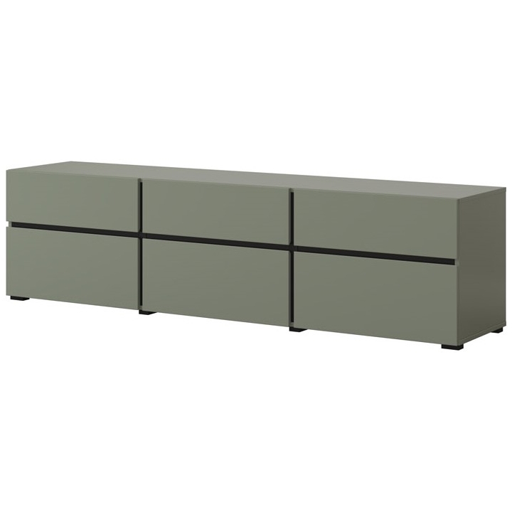 Szafka RTV Cross 3K3S typ 41 Helvetia Wieruszów to propozycja dla osób poszukujących solidnego i nowoczesnego wyposażenia wnętrz. Mebel dostępny jest w czterech wariantach kolorystycznych: biały, zgaszona zieleń, congo oraz dąb wotan z dodatkami czarnych elementów, co pozwala dopasować go do różnych aranżacji salonu. Subtelne kontrasty oraz staranne wykończenie nadają całości wyrazisty charakter.