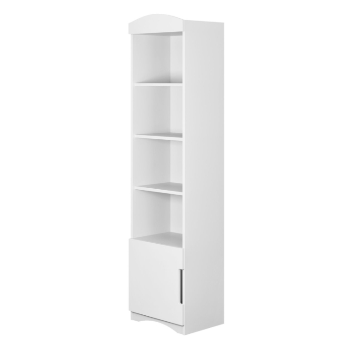 Regał pojedynczy z kolekcji Classic to kompaktowy mebel o szerokości 46 cm, wysokości 180,5 cm oraz głębokości 36 cm. Ze względu na swoją wąską formę, idealnie sprawdza się w małych pokojach dziecięcych, pozwalając na maksymalne wykorzystanie wolnej przestrzeni przy ścianie. Mebel wykonano z wysokiej jakości laminowanej płyty wiórowej o grubości 18 mm, co gwarantuje stabilność konstrukcji.