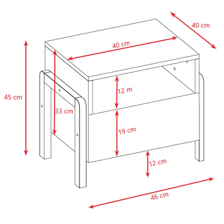Szafka nocna Victor to kompaktowy mebel stworzony z myślą o pokojach dziecięcych i młodzieżowych. Dzięki wymiarom 46 cm szerokości, 45 cm wysokości oraz 40 cm głębokości, idealnie mieści się obok łóżka, stanowiąc bazę pod lampkę nocną czy budzik.