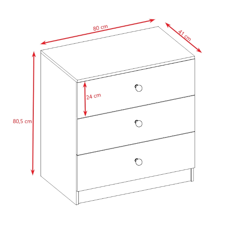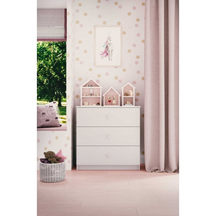 Komoda Babydreams to mebel do przechowywania zaprojektowany z myślą o aranżacji pokoju dziecięcego. Ma 80 cm szerokości, 80,5 cm wysokości oraz 41 cm głębokości.