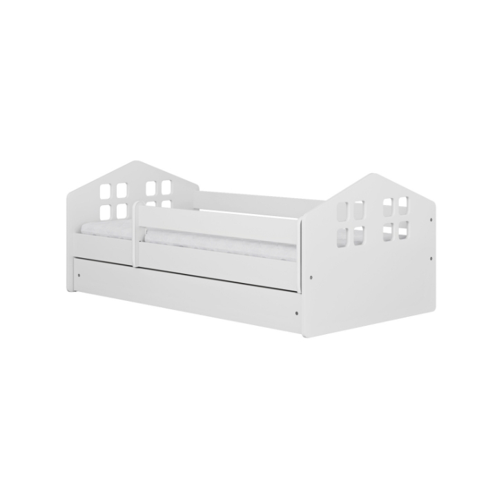 Do produkcji łóżka wykorzystano wysokiej jakości laminowaną płytę wiórową o grubości 18 mm, natomiast fronty wykonano z dwukrotnie lakierowanej płyty MDF. Producent zadbał o bezpieczeństwo najmłodszych, stosując zaokrąglone krawędzie mebla. Dodatkowym atutem jest ruchoma barierka ochronna – można ją zakładać na czas nocnego odpoczynku i swobodnie zdejmować w ciągu dnia, by nie ograniczać dziecku dostępu do łóżka.