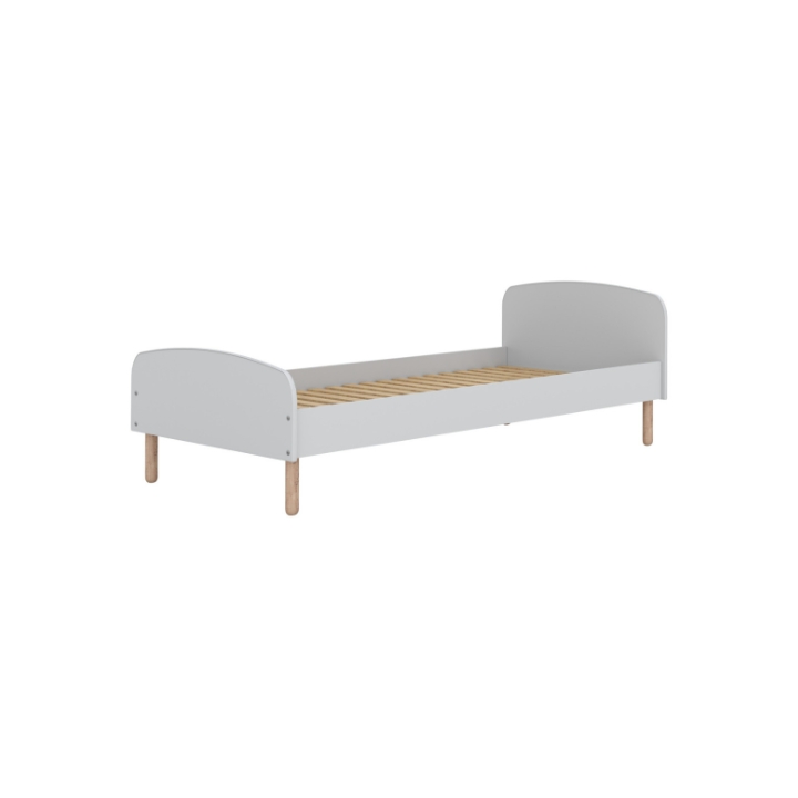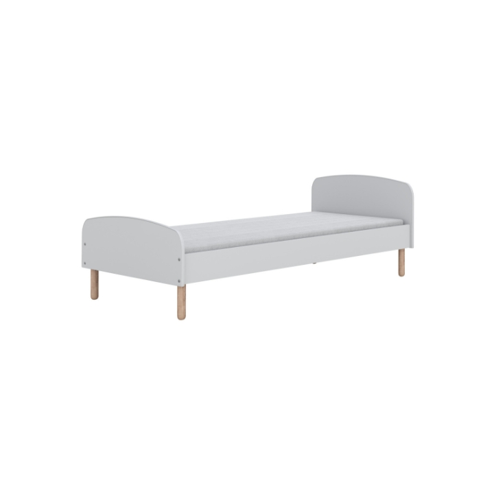 Łóżko dziecięce Emma to stylowy i solidny mebel o szerokości 96,5 cm, głębokości 203,6 cm oraz wysokości 70 cm, oferujący powierzchnię spania 200x90 cm. Łóżko idealnie pasuje do współczesnych pokoi dziecięcych i młodzieżowych. Charakterystycznym elementem konstrukcji są owalne nogi wykonane z naturalnego drewna bukowego, które nadają bryle lekkości.