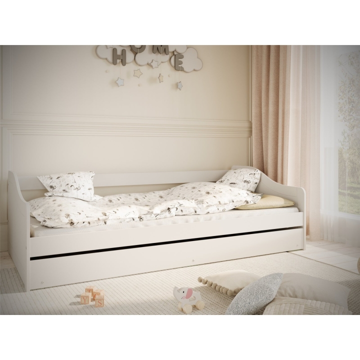 W zestawie z łóżkiem znajduje się dedykowany stelaż, natomiast materace (główny oraz do szuflady) nie są częścią zestawu i należy dokupić je osobno.