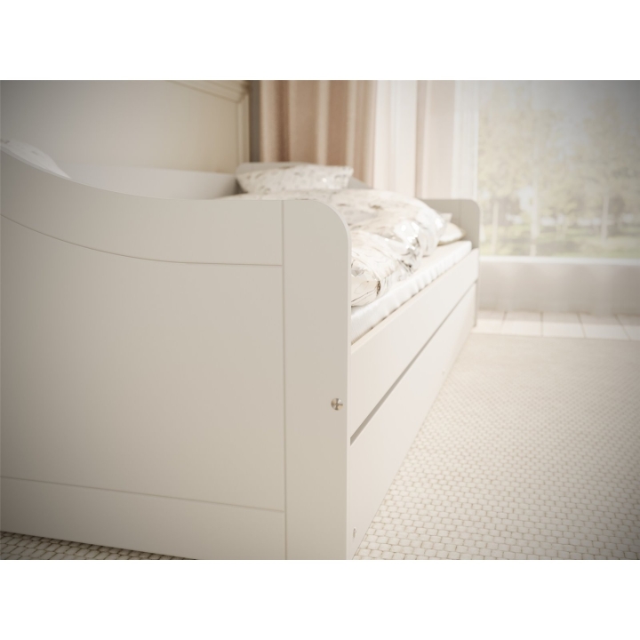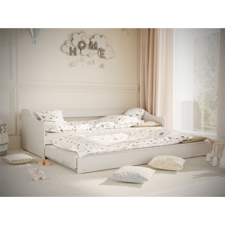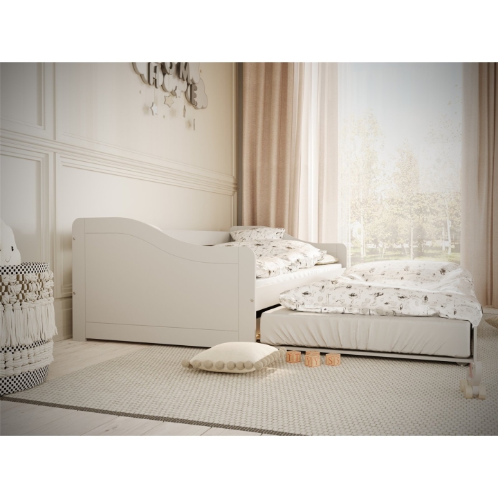 Największym atutem modelu Blanka jest dodatkowe, wysuwane miejsce do spania ukryte w dolnej szufladzie. To wyjątkowe rozwiązanie, które pozwala błyskawicznie przygotować nocleg dla gościa lub stworzyć wspólną przestrzeń dla rodzeństwa bez zajmowania dodatkowego miejsca na co dzień.