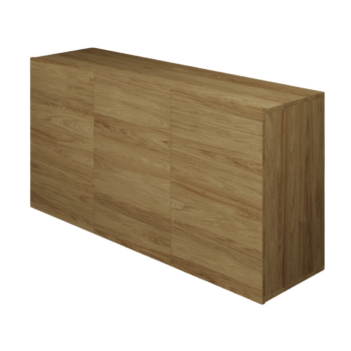 Konstrukcja komody opiera się na trzech zamykanych szafkach. Wnętrze każdej z nich skrywa regulowaną półkę, co pozwala na swobodne dostosowanie wysokości schowków do gabarytów przechowywanych rzeczy. Całość wykonano z wysokiej jakości, trwałej płyty meblowej, która gwarantuje stabilność i estetyczny wygląd przez długie lata użytkowania.