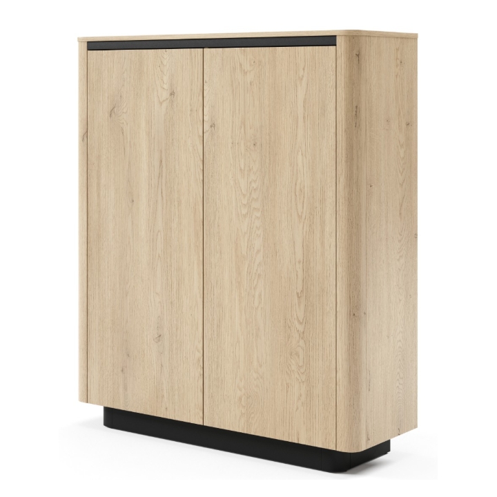 Komoda wysoka 2D Torro to połączenie naturalnego odcienia drewna i głębokiej czerni w prostym, geometrycznym układzie, który pozwala uporządkować przestrzeń i jednocześnie wprowadza do wnętrza nowoczesny akcent. Dzięki swojej uniwersalnej kolorystyce i obłej linii świetnie odnajdzie się zarówno w salonie, jadalni, jak i w biurze.