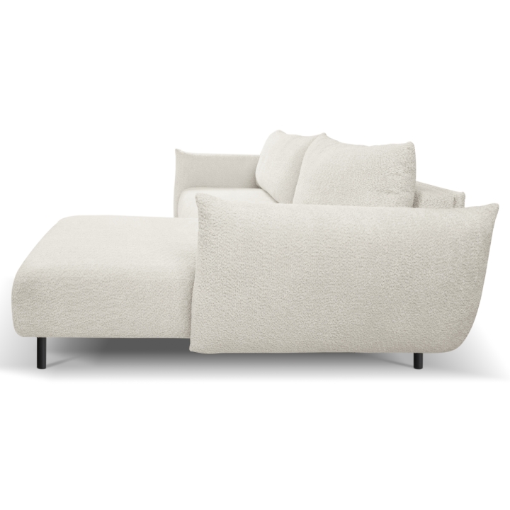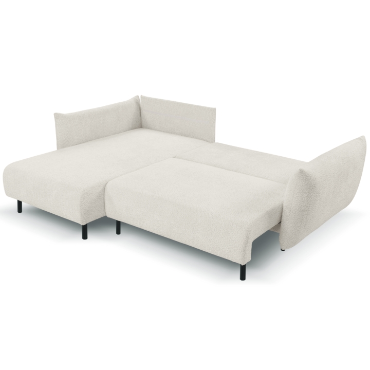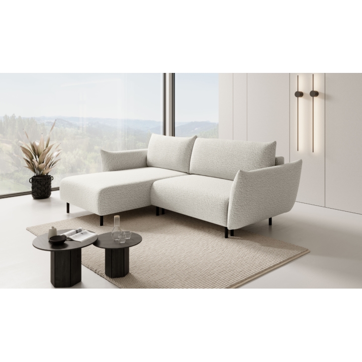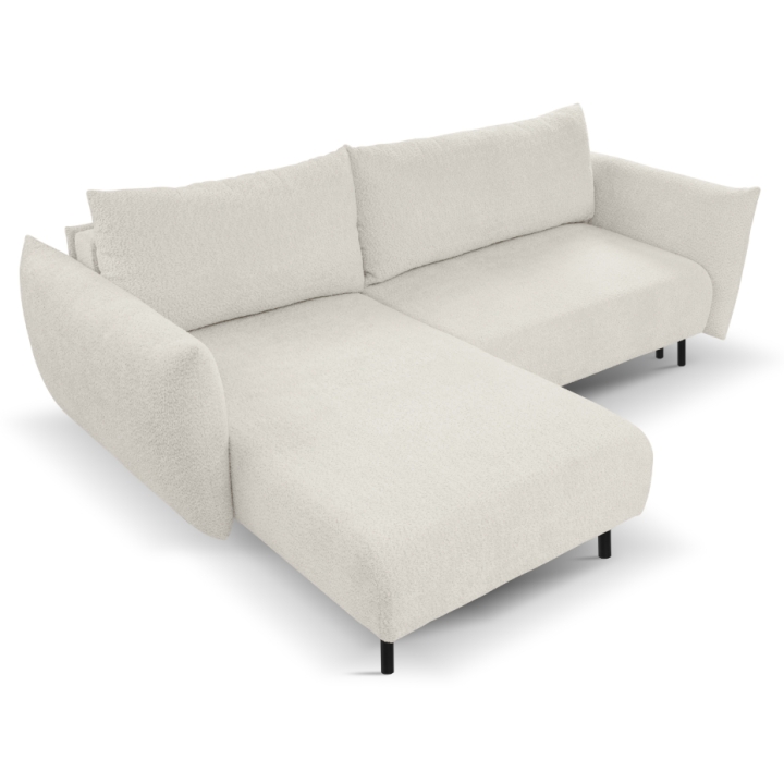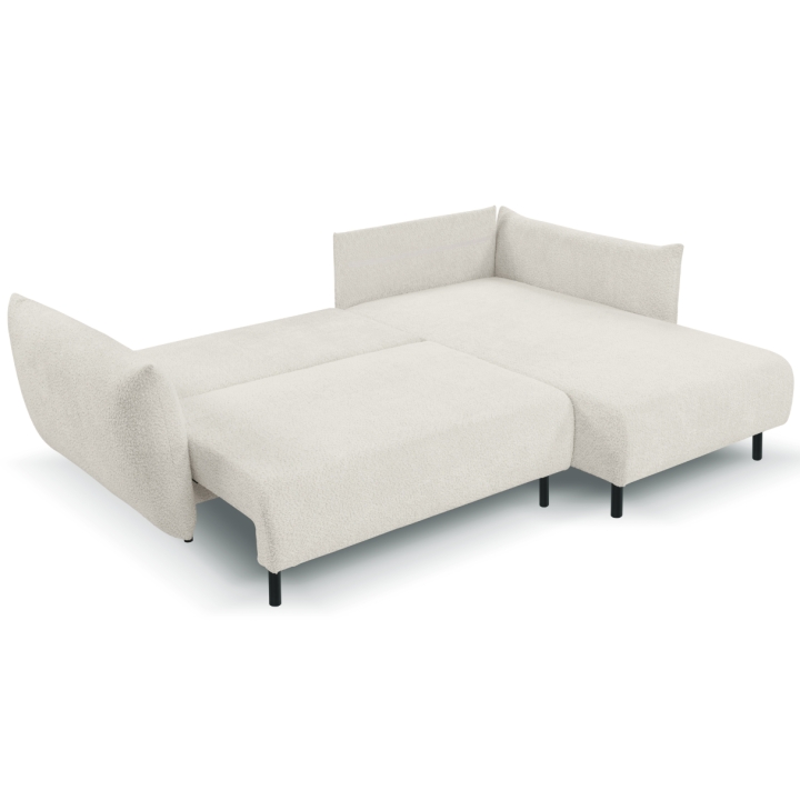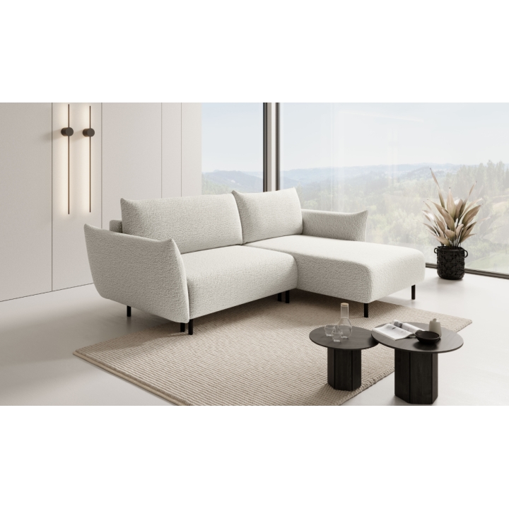 Miękkie siedzisko z pianki poliuretanowej sprzyja odprężeniu po intensywnym dniu, a dobrze wyprofilowane oparcie gwarantuje wygodne podparcie podczas codziennego odpoczynku. Funkcja spania DL pozwala w prosty sposób przekształcić narożnik w przestronne miejsce do snu o wymiarach 145x212 cm, idealne na wieczorny relaks lub nocleg dla gości. Wbudowany pojemnik na pościel ułatwia przechowywanie kołdry i poduszek, zachowując porządek w salonie.