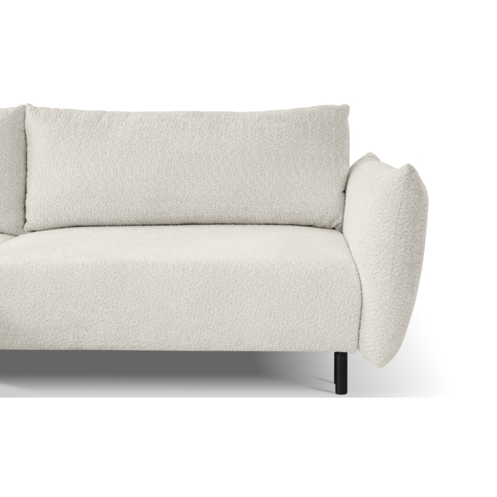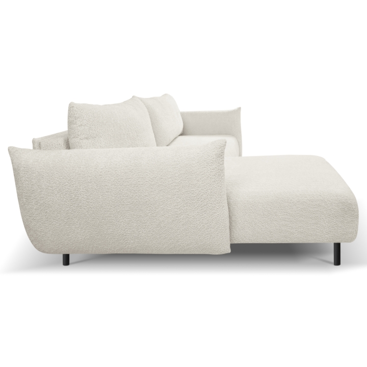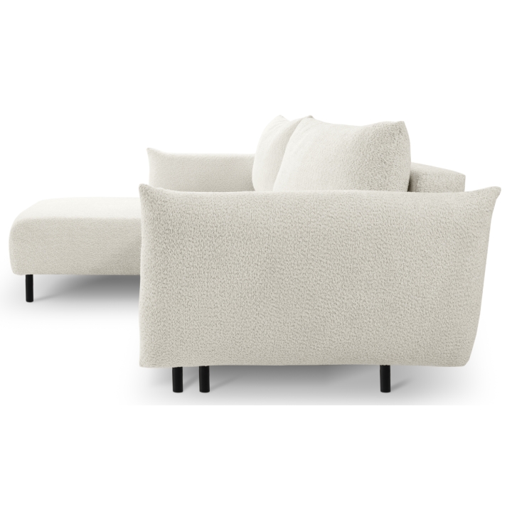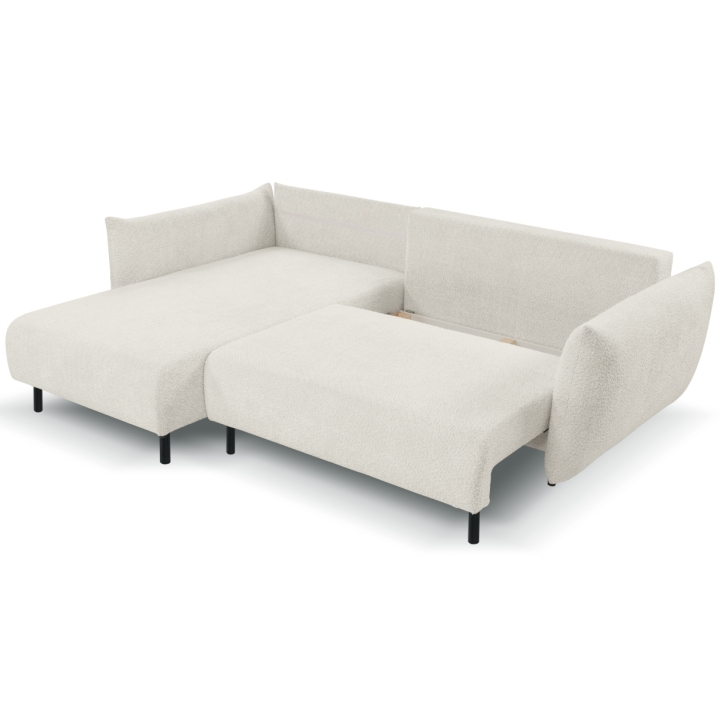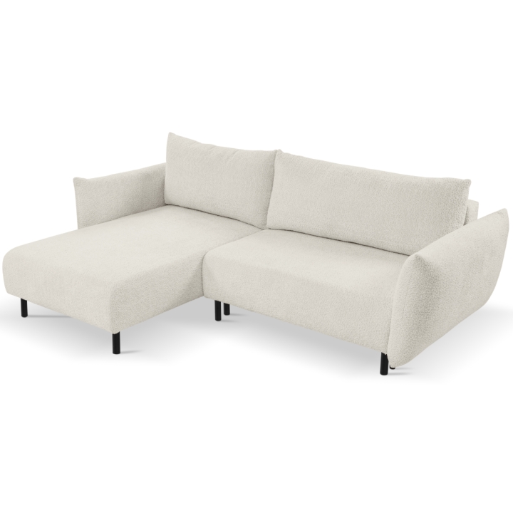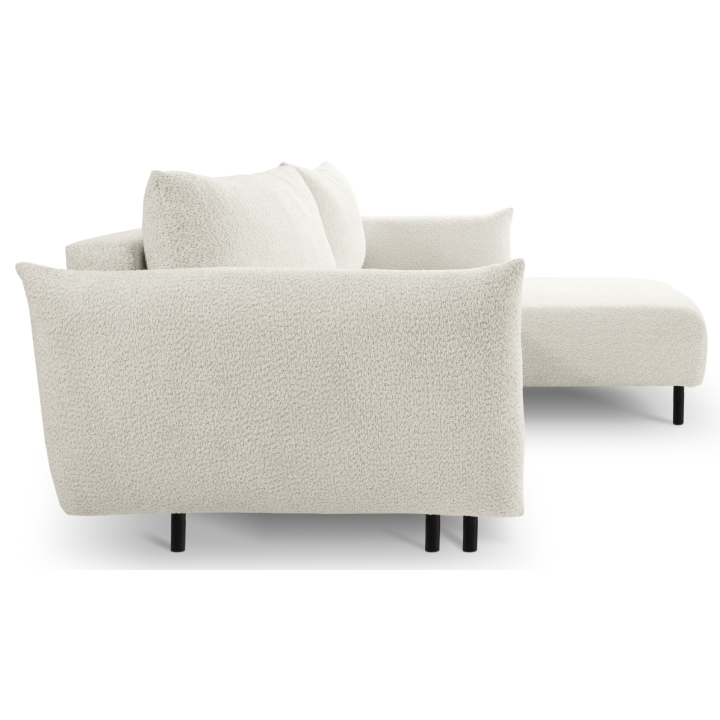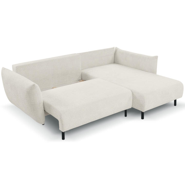 Miękkie siedzisko z pianki poliuretanowej sprzyja odprężeniu po intensywnym dniu, a dobrze wyprofilowane oparcie gwarantuje wygodne podparcie podczas codziennego odpoczynku. Funkcja spania DL pozwala w prosty sposób przekształcić narożnik w przestronne miejsce do snu o wymiarach 145x212 cm, idealne na wieczorny relaks lub nocleg dla gości. Wbudowany pojemnik na pościel ułatwia przechowywanie kołdry i poduszek, zachowując porządek w salonie.