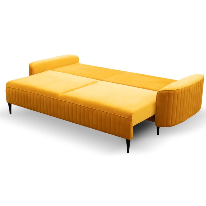 Sofa Vena posiada funkcję spania DL, która umożliwia szybkie i łatwe rozłożenie - po wysunięciu siedziska i złożeniu oparcia powstaje powierzchnia spania o wymiarach 140x200 cm, idealna dla dwóch osób. Dodatkowo mebel wyposażony jest w pojemnik na pościel, który pozwala zachować porządek i przechowywać potrzebne tekstylia.