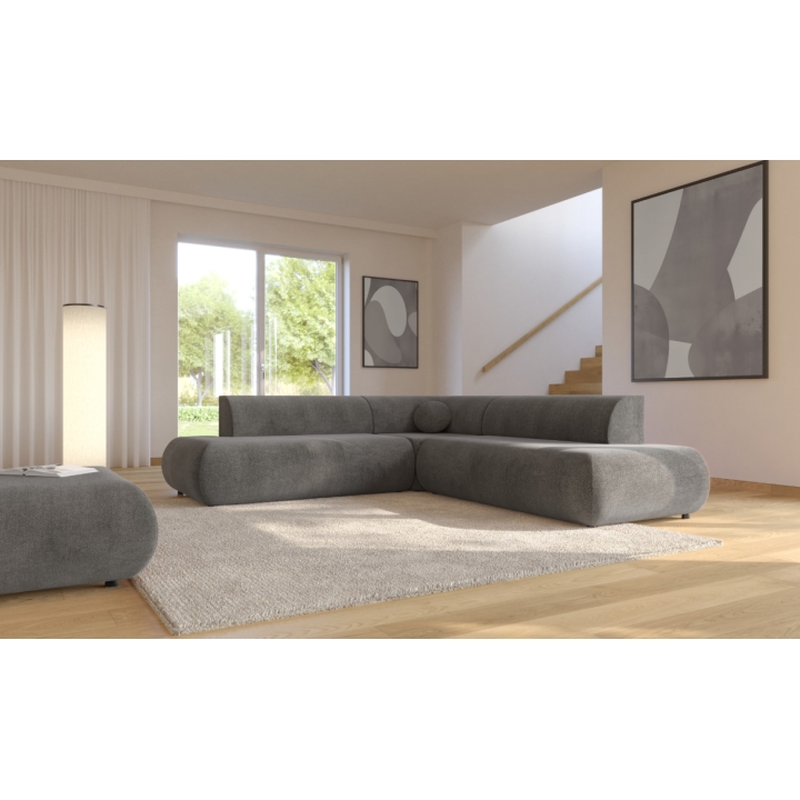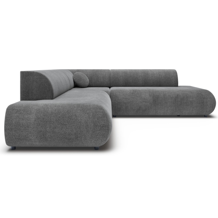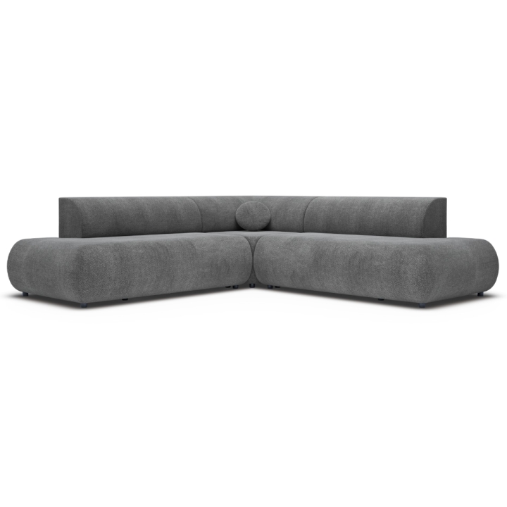 Siedzisko oparte na piance poliuretanowej i pasach tapicerskich zapewnia odpowiednią sprężystość oraz stabilne podparcie, a oparcie wypełnione pianką gwarantuje wygodę podczas dłuższego wypoczynku. Nakładane poduchy oparciowe oraz dodatkowa poduszka ozdobna dodają miękkości i pozwalają łatwo zmieniać wygląd narożnika w zależności od potrzeb.
