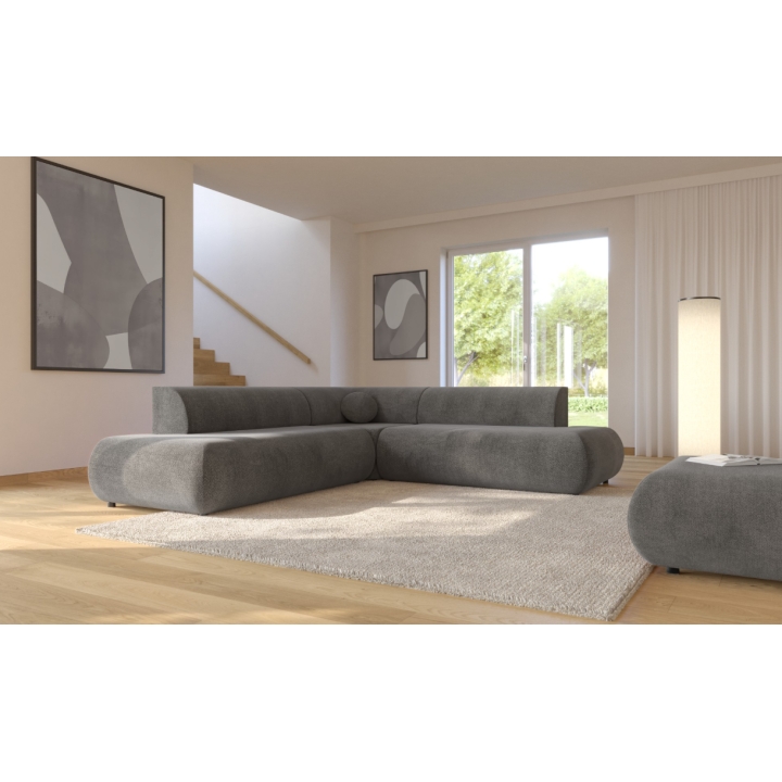 Narożnik Puente II dostępny jest w szerokiej gamie tkanin o różnych strukturach i kolorach, dzięki czemu można stworzyć wersję idealnie dopasowaną do charakteru wnętrza. Możliwość wyboru strony narożnika – lewej lub prawej – ułatwia jego ustawienie w salonie i dopasowanie do układu pomieszczenia. Całość tworzy spójną, miękką formę, która sprzyja odpoczynkowi i wprowadza do domu atmosferę spokoju.