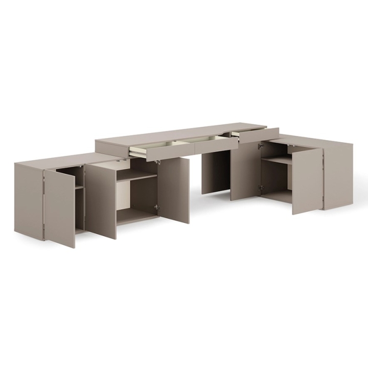 Zestaw SET-WOS7L o imponujących wymiarach – szerokość 338 cm, wysokość 79 cm oraz głębokość 141 cm – to propozycja skierowana do osób poszukujących wyszukanego wyposażenia do pokoju dorastającego chłopca lub dziewczynki. Kolekcja WOOW od renomowanego producenta Lenart odznacza się nowoczesną koncepcją przestrzenną, która wspiera tworzenie indywidualnego miejsca zarówno do nauki, jak i odpoczynku. Jasnoszara tonacja "clay grey" nadaje aranżacji subtelnej świeżości, zachowując jednocześnie wizualną równowagę.