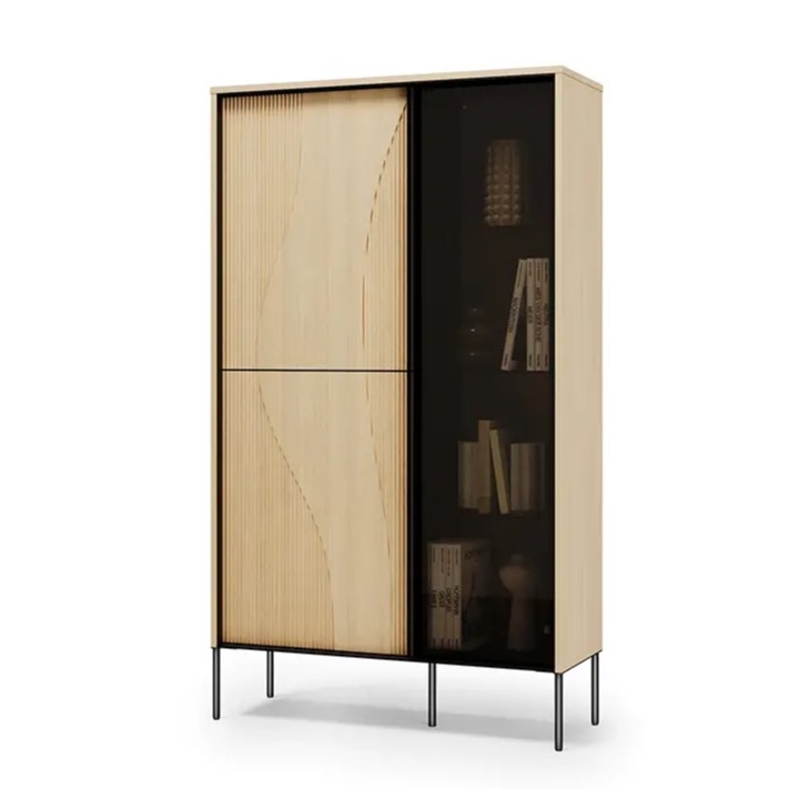 Witryna FW-01 Lenart z kolekcji FLOW od Lenart to mebel przeznaczony do ekspozycji i przechowywania w przestrzeni dziennej. Konstrukcja obejmuje 3 drzwi, a całość osadzono na metalowych nogach, które zapewniają stabilne podparcie. Przeznaczenie: pokój dzienny, typ mebla: witryna.