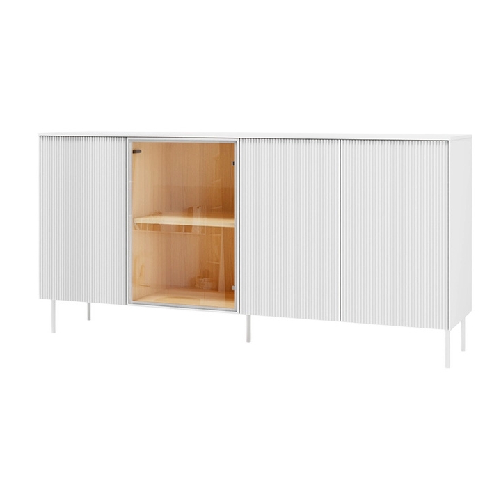 closeKomoda Liba LB-04 producenta Lenart o szerokości 170 cm, wysokości 83 cm oraz głębokości 41 cm to czterodrzwiowy mebel osadzony na wysokich nóżkach. Wnętrze mebla skrywa trzy pojemne szafki wyposażone w półki, co ułatwia uporządkowane przechowywanie zastawy, dokumentów lub tekstyliów.
