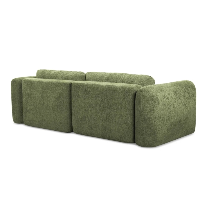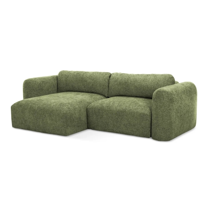 Siedzisko o szerokości 200 cm i głębokości 60 cm zapewnia komfortową przestrzeń do siedzenia dla kilku osób. Szezlong o głębokości 105 cm pozwala wygodnie wyciągnąć nogi i stworzyć idealne miejsce do odpoczynku lub oglądania filmów. Wypełnienie z pianki PUR oraz średnio twarde siedzisko gwarantują stabilne podparcie ciała i komfort użytkowania każdego dnia.
