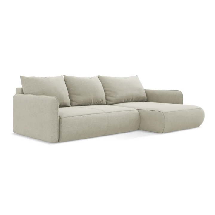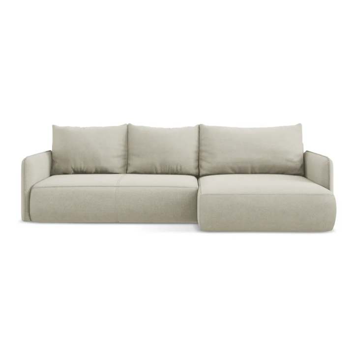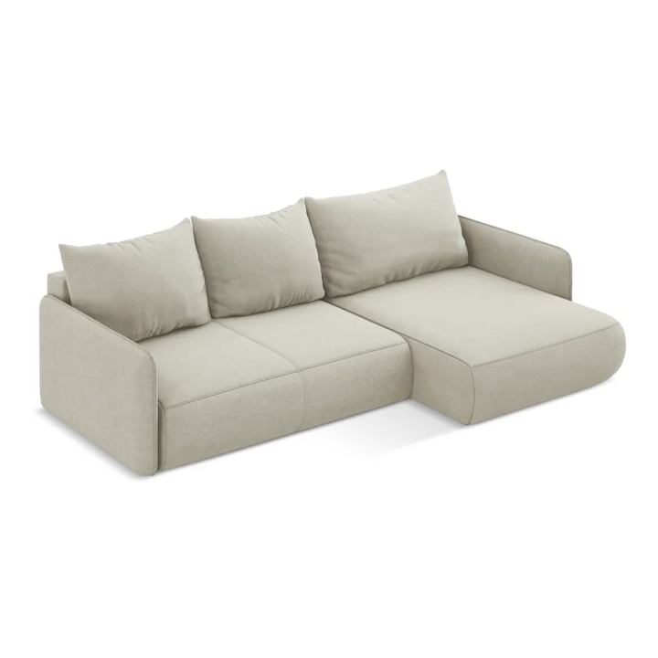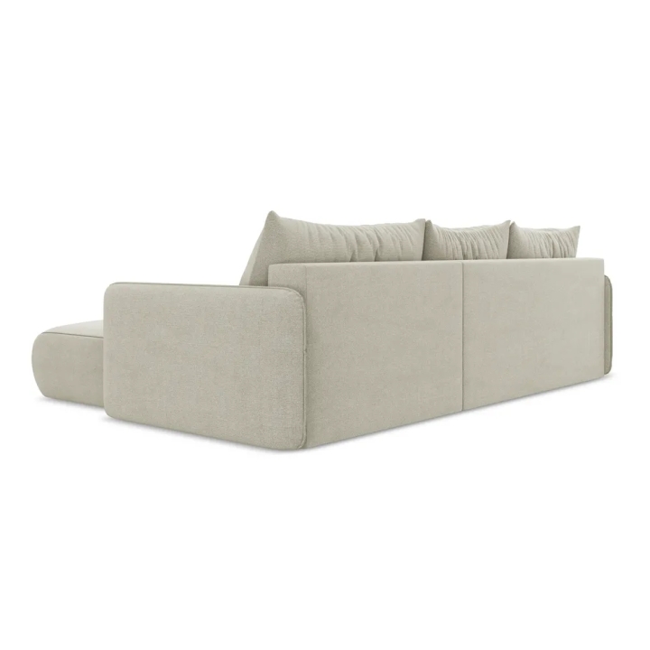 Siedzisko o szerokości 170 cm i głębokości 61 cm oferuje komfortową przestrzeń do siedzenia dla kilku osób. Dodatkowa część narożna pozwala stworzyć wygodną strefę wypoczynku, idealną do oglądania filmów, spotkań z rodziną lub relaksu z książką. Wypełnienie z pianki PUR oraz średnio twarde siedzisko zapewniają stabilne podparcie ciała i komfort podczas codziennego użytkowania.