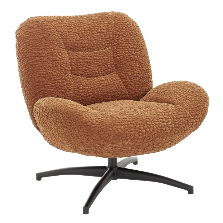 Siedzisko fotela obraca się płynnie w zakresie 360°, a zintegrowany mechanizm automatycznego powrotu dba o to, by zawsze wracał do pierwotnego ustawienia. Konstrukcja opiera się na solidnym, czarnym matowym stelażu, który gwarantuje trwałość i pewność użytkowania. Wymiary mebla to: 84 cm wysokości, 83 cm szerokości i 91 cm głębokości; wymaga on częściowego montażu.