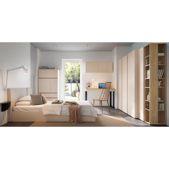 Korpus i front mebla wykończono w odcieniu beż piaskowy. Połączenie tych dwóch tonów sprawia, że komoda LC9 wpisuje się w nowoczesne i stonowane wnętrza, jednocześnie nie przytłaczając przestrzeni. Matowe wykończenie eliminuje efekt odbijania światła, co podnosi komfort wizualny w codziennym użytkowaniu. Krawędzie mebla wzmocniono okleiną ABS, która zabezpiecza konstrukcję przed uderzeniami, zarysowaniami i wilgocią.