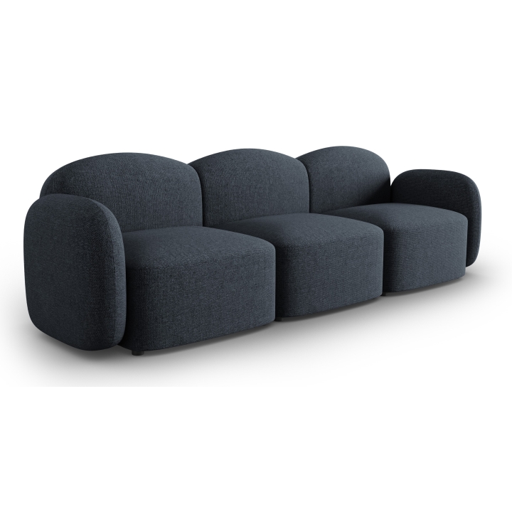 Sofa 3 osobowa Blair producenta Micadoni to mebel, który wyróżnia się oryginalną i przemyślaną formą, oferując wygodę na najwyższym poziomie. W jej designie uwagę przyciągają zaokrąglone kształty – zarówno siedzisko, jak i podłokietniki, pozbawione kanciastych linii, tworzą spójną, ciekawą całość. Urokliwie niskie oparcie zachęca do spędzania czasu w wygodnej pozycji, a głębokie siedzisko zapewnia przestronność i komfort.