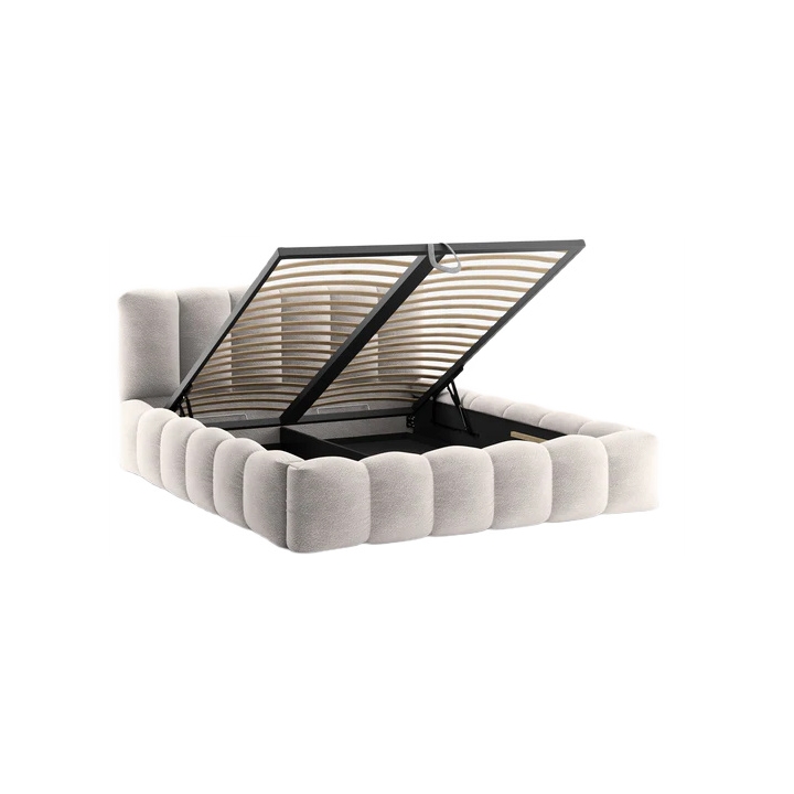 Kluczową funkcją jest pojemnik na pościel pod materacem, otwierany od frontu. Schowek ten pozwala na estetyczne przechowywanie pościeli, koców i tekstyliów. Maksymalne obciążenie pojemnika wynosi 7 kg. Otwieranie stelaża jest lekkie i bezpieczne dzięki zastosowaniu podnośników gazowych.