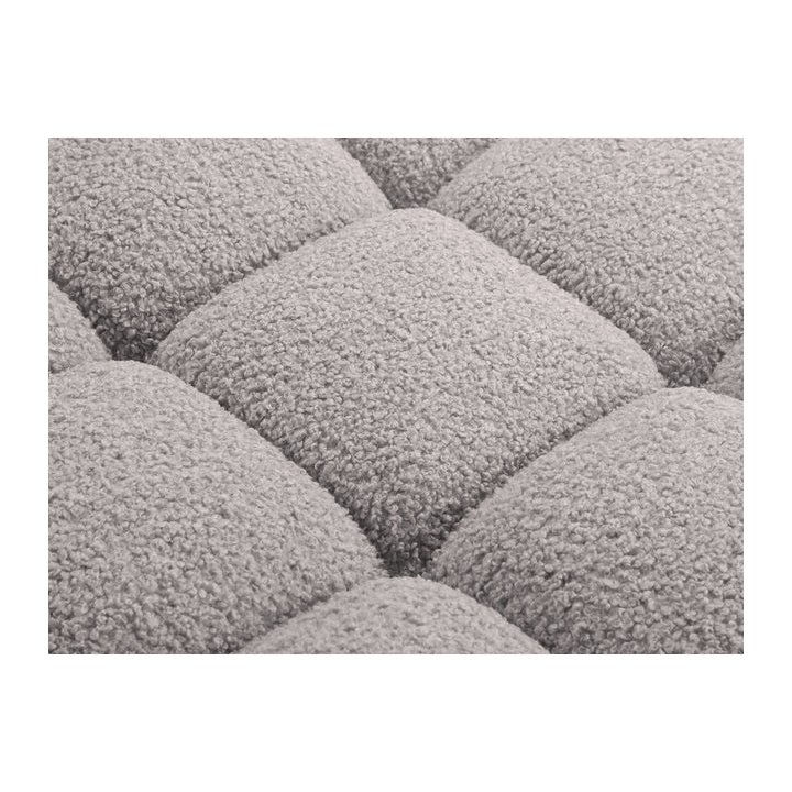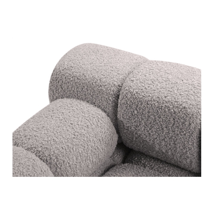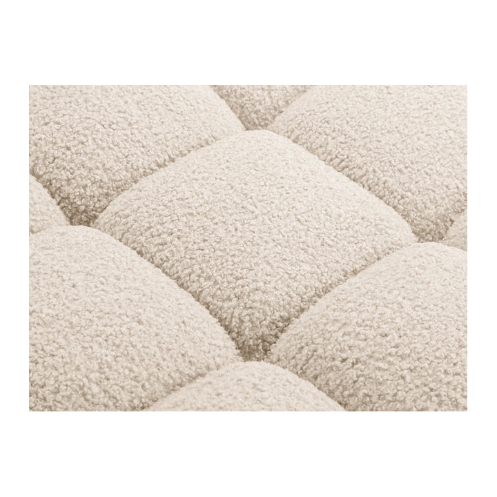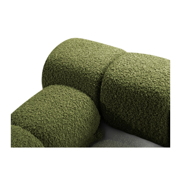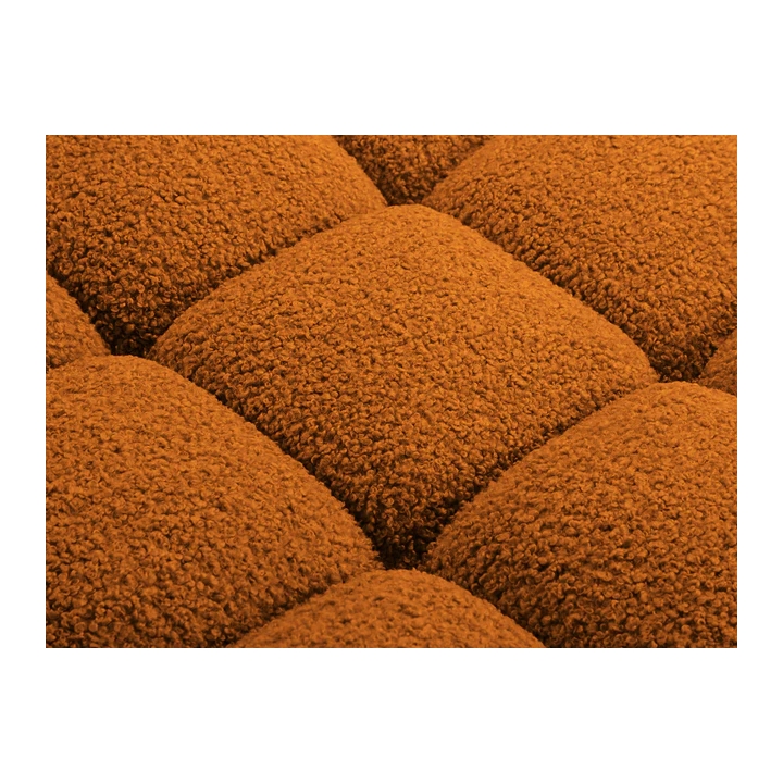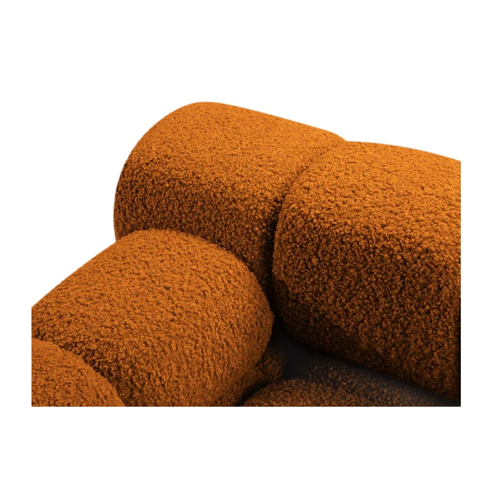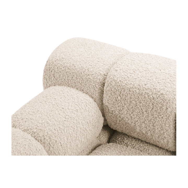 Mebel jest obity tkaniną tapicerską Rolf, która jest strukturalnym materiałem typu boucle. Ta tkanina ma na powierzchni liczne, małe, wełniste pętelki, co nadaje jej fakturę podobną do owczej skóry, wprowadzając ciepło i miękkość.