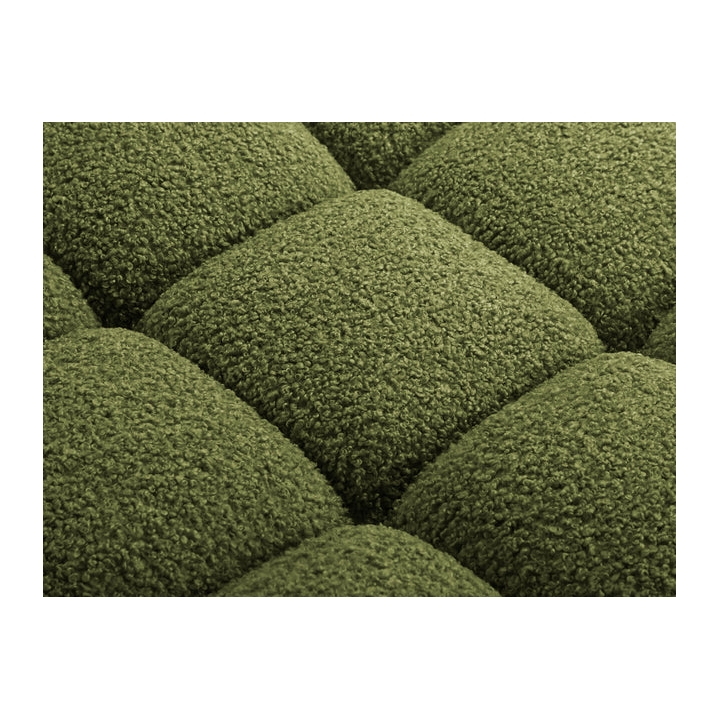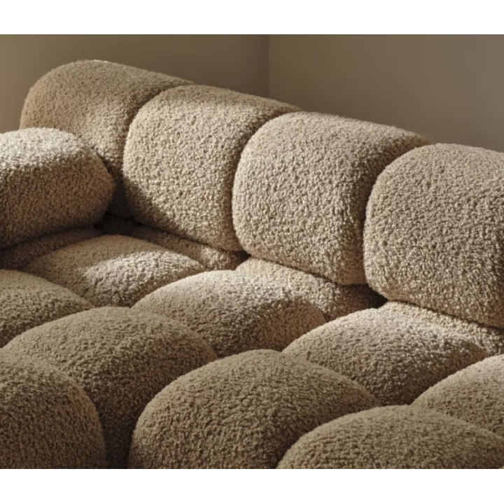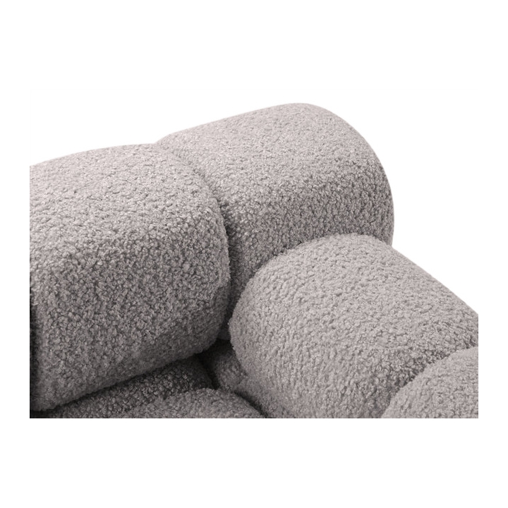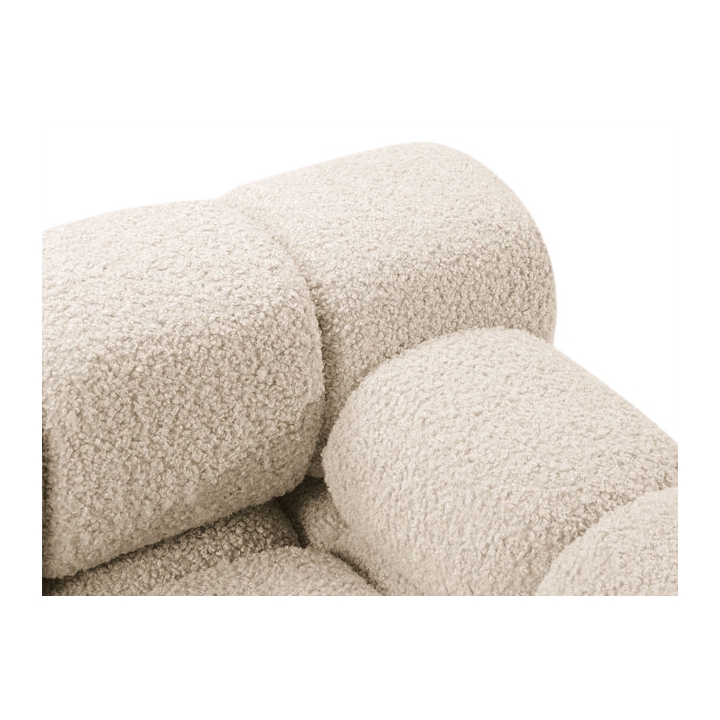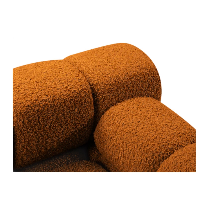 Mebel jest obity tkaniną tapicerską Rolf, która jest strukturalnym materiałem typu boucle. Ma powierzchni liczne, małe, wełniste pętelki, co nadaje jej fakturę podobną do owczej skóry, wprowadzając ciepło i miękkość.