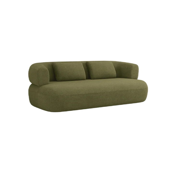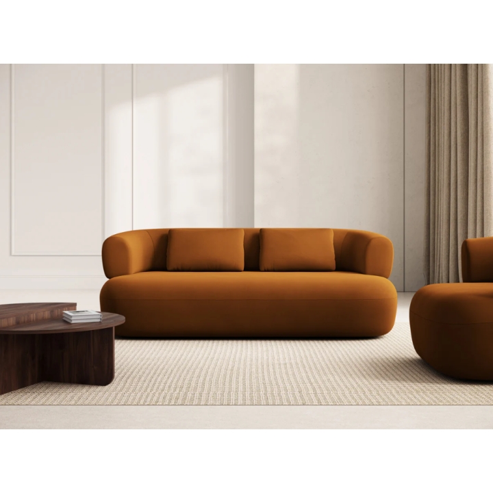 Wnętrze sofy zostało zaprojektowane z myślą o pełnym komforcie. Zarówno zaokrąglone oparcie, jak i siedzisko wypełniono elastyczną pianką poliuretanową, która zapewnia uczucie otulenia i miękkości. Siedzisko znajduje się na wysokości 40 cm, a jego głębokość wynosi 62 cm, co gwarantuje wygodną i naturalną pozycję ciała.