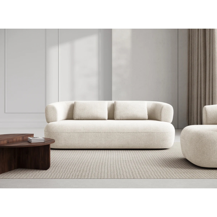 Sofa dwuosobowa Jenny od Micadoni to mebel, który wprowadza do wnętrza spokój i miękkość dzięki swojej unikalnej, zaokrąglonej sylwetce. Ma 178 cm szerokości, 73 cm wysokości oraz 90 cm głębokości, co czyni ją idealnym rozwiązaniem do mniejszych salonów. Obłe krawędzie tworzą urokliwy, nowoczesny wygląd, który idealnie wpisuje się w aktualne trendy aranżacyjne.