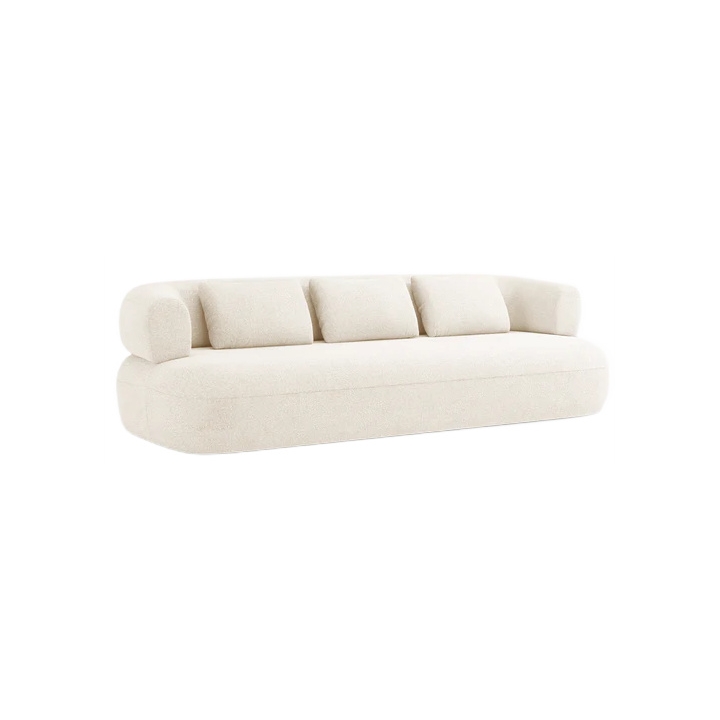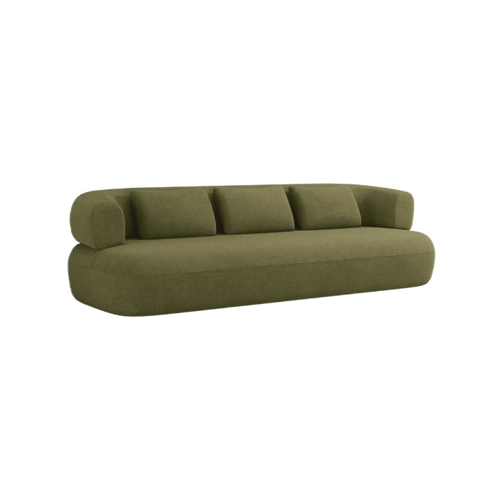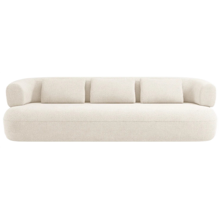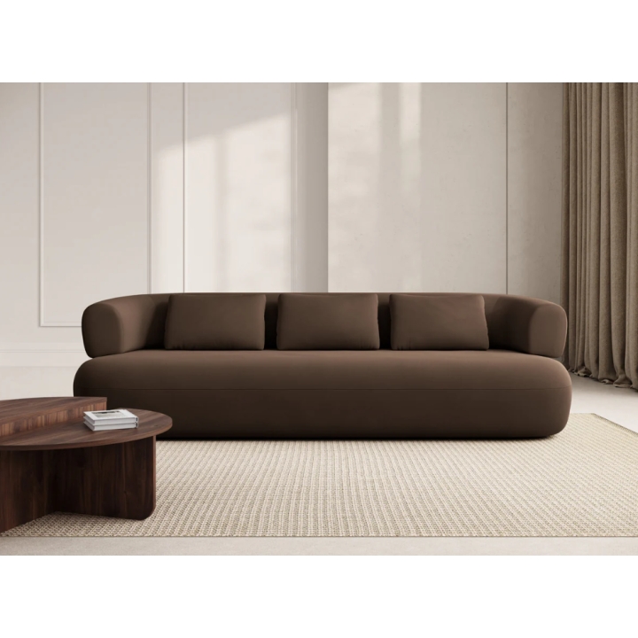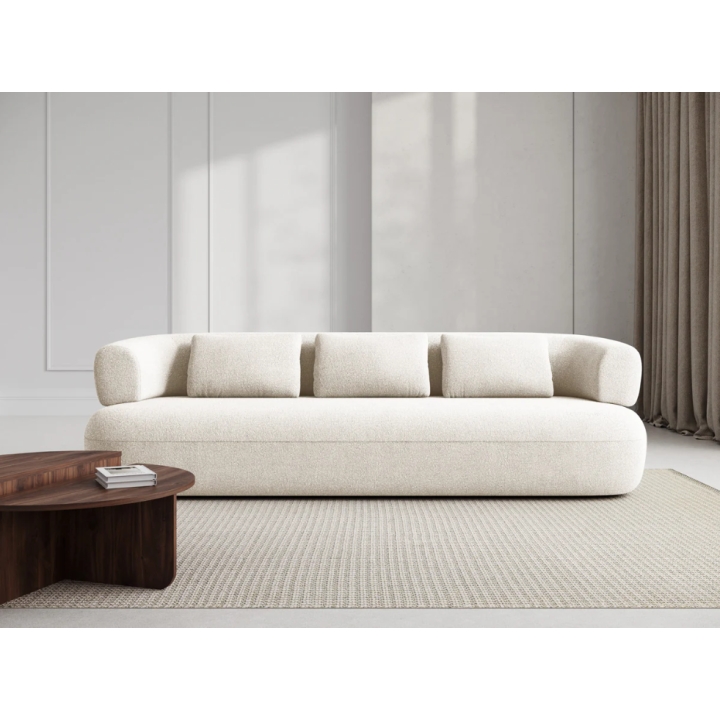 Sofa trzyosobowa Jenny od Micadoni to obszerny mebel wypoczynkowy, który przyciąga wzrok swoją obłą, nowoczesną sylwetką. Posiada 200 cm szerokości, 73 cm wysokości oraz 90 cm głębokości, co pozwala na komfortowe ugoszczenie trzech osób. Zaokrąglone krawędzie wprowadzają do pokoju dziennego harmonię oraz miękki, otulający klimat, który idealnie pasuje do współczesnych aranżacji.
