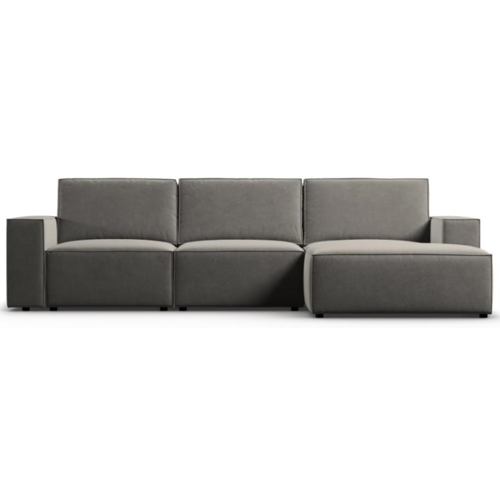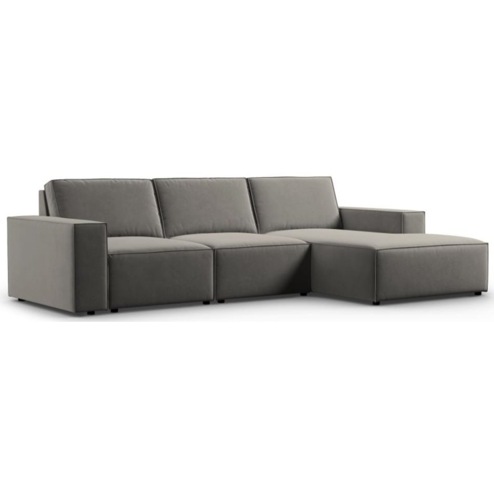 Sofa narożna 4 os. Carlo producenta Milo Casa to mebel o wymiarach: 289 cm szerokości, 90 cm wysokości, 166 cm głębokości, który charakteryzuje się niezwykłą wygodą. Ten modny narożnik jest dostępny w 7 kolorach: Jasny Beżowy, Królewski Niebieski, Szary, Jasny Szary, Żółty, Czarny oraz Butelkowy Zielony, dzięki czemu będzie pasować do każdego rodzaju wnętrz. Wypełnienie siedziska wykonano z połączenia sprężyny falistej oraz pianki poliuretanowej o wysokiej elastyczności, a oparcie wypełniono silikonem. Mebel został obity aksamitną delikatnie połyskującą tkaniną, miłą i przyjemną w dotyku, która zapewnia najwyższy komfort wypoczynku, a dodatkowo jest odporna na ścieranie. Wysokiej jakości materiały wykorzystane do produkcji mebla sprawiają, że sofa narożna Carlo charakteryzuje się dużą wytrzymałością i trwałością. Mebel jest osadzony na niskich, wykonanych z tworzywa nogach. Leżanka może być wyprodukowana z lewej lub z prawej strony, dzięki czemu można lepiej dostosować mebel do swojego mieszkania.
