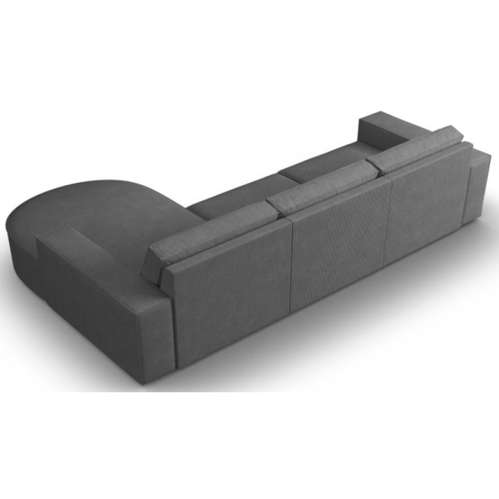 Wyjątkowa sofa narożna 4 os. Carlo zaokrąglona producenta Milo Casa to mebel o wymiarach: 289 cm szerokości, 90 cm wysokości, 166 cm głębokości, który charakteryzuje się niezwykłą wygodą. Ten modny narożnik jest dostępny w 8 kolorach: Beżowy, Jasny Niebieski, Ciemny Niebieski, Szary, Jasny Szary, Żółty, Czarny oraz Butelkowy Zielony, dzięki czemu będzie pasować do każdego rodzaju wnętrz. Wypełnienie siedziska wykonano z połączenia sprężyny falistej oraz pianki poliuretanowej o wysokiej elastyczności, a oparcie wypełniono silikonem. Wyróżnikiem sofy narożnej jest niewątpliwie jej zaokrąglona leżanka, która dodaje bryle elegancji i szyku. Mebel został obity sztruksową, matową tkaniną, która zapewnia najwyższy komfort wypoczynku, a dodatkowo jest miła w dotyku. Wysokiej jakości materiały wykorzystane do produkcji mebla sprawiają, że sofa narożna Carlo charakteryzuje się dużą wytrzymałością i trwałością. Mebel jest osadzony na niskich, wykonanych z tworzywa nogach. Leżanka może być wyprodukowana z lewej lub z prawej strony, dzięki czemu można lepiej dostosować mebel do swojego mieszkania.