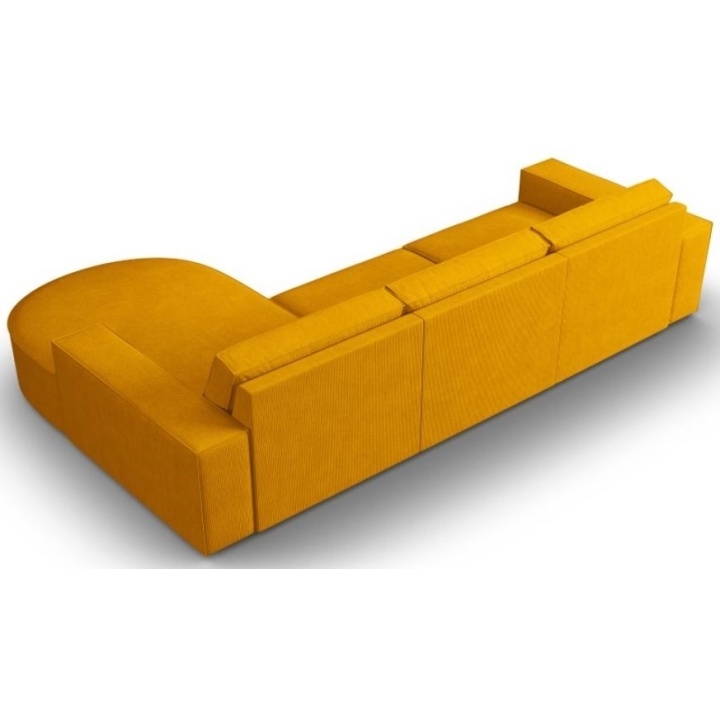 Wyjątkowa sofa narożna 4 os. Carlo zaokrąglona producenta Milo Casa to mebel o wymiarach: 289 cm szerokości, 90 cm wysokości, 166 cm głębokości, który charakteryzuje się niezwykłą wygodą. Ten modny narożnik jest dostępny w 8 kolorach: Beżowy, Jasny Niebieski, Ciemny Niebieski, Szary, Jasny Szary, Żółty, Czarny oraz Butelkowy Zielony, dzięki czemu będzie pasować do każdego rodzaju wnętrz. Wypełnienie siedziska wykonano z połączenia sprężyny falistej oraz pianki poliuretanowej o wysokiej elastyczności, a oparcie wypełniono silikonem. Wyróżnikiem sofy narożnej jest niewątpliwie jej zaokrąglona leżanka, która dodaje bryle elegancji i szyku. Mebel został obity sztruksową, matową tkaniną, która zapewnia najwyższy komfort wypoczynku, a dodatkowo jest miła w dotyku. Wysokiej jakości materiały wykorzystane do produkcji mebla sprawiają, że sofa narożna Carlo charakteryzuje się dużą wytrzymałością i trwałością. Mebel jest osadzony na niskich, wykonanych z tworzywa nogach. Leżanka może być wyprodukowana z lewej lub z prawej strony, dzięki czemu można lepiej dostosować mebel do swojego mieszkania.