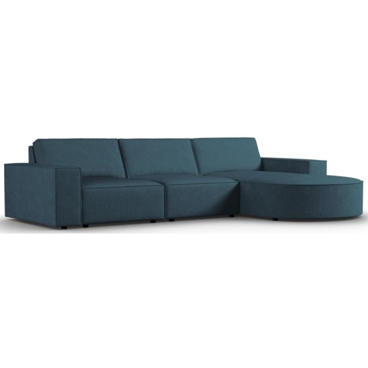 Wyjątkowa sofa narożna 4 os. Carlo zaokrąglona producenta Milo Casa to mebel o wymiarach: 289 cm szerokości, 90 cm wysokości, 166 cm głębokości, który charakteryzuje się niezwykłą wygodą. Ten modny narożnik jest dostępny w 8 kolorach: Beżowy, Jasny Niebieski, Ciemny Niebieski, Szary, Jasny Szary, Żółty, Czarny oraz Butelkowy Zielony, dzięki czemu będzie pasować do każdego rodzaju wnętrz. Wypełnienie siedziska wykonano z połączenia sprężyny falistej oraz pianki poliuretanowej o wysokiej elastyczności, a oparcie wypełniono silikonem. Wyróżnikiem sofy narożnej jest niewątpliwie jej zaokrąglona leżanka, która dodaje bryle elegancji i szyku. Mebel został obity sztruksową, matową tkaniną, która zapewnia najwyższy komfort wypoczynku, a dodatkowo jest miła w dotyku. Wysokiej jakości materiały wykorzystane do produkcji mebla sprawiają, że sofa narożna Carlo charakteryzuje się dużą wytrzymałością i trwałością. Mebel jest osadzony na niskich, wykonanych z tworzywa nogach. Leżanka może być wyprodukowana z lewej lub z prawej strony, dzięki czemu można lepiej dostosować mebel do swojego mieszkania.