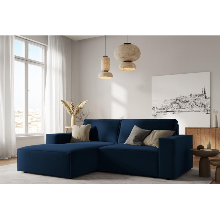 Kompaktowa sofa narożna 3 os. Carlo producenta Milo Casa to mebel o wymiarach: 229 cm szerokości, 90 cm wysokości, 166 cm głębokości, który charakteryzuje się niezwykłą wygodą. Ten modny narożnik jest dostępny w 7 kolorach: Jasny Beżowy, Królewski Niebieski, Szary, Jasny Szary, Żółty, Czarny oraz Butelkowy Zielony, dzięki czemu będzie pasować do każdego rodzaju wnętrz. Wypełnienie siedziska wykonano z połączenia sprężyny falistej oraz pianki poliuretanowej o wysokiej elastyczności, a oparcie wypełniono silikonem. Wyróżnikiem sofy są jej niewielkie wymiary, które sprawią, że zmieści się w większości pomieszczeń. Mebel został obity aksamitną tkaniną, miłą i przyjemną w dotyku o delikatnym połysku, która zapewnia najwyższy komfort wypoczynku, a dodatkowo jest odporna na ścieranie. Wysokiej jakości materiały wykorzystane do produkcji mebla sprawiają, że sofa narożna Carlo charakteryzuje się dużą wytrzymałością i trwałością. Mebel jest osadzony na niskich, wykonanych z tworzywa nogach. Leżanka może być wyprodukowana z lewej lub z prawej strony, dzięki czemu można lepiej dostosować mebel do swojego mieszkania.