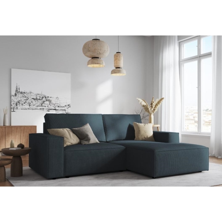 Kompaktowa sofa narożna 3 os. Carlo producenta Milo Casa to mebel o wymiarach: 229 cm szerokości, 90 cm wysokości, 166 cm głębokości, który charakteryzuje się niezwykłą wygodą. Ten modny narożnik jest dostępny w 8 kolorach: Beżowy, Jasny Niebieski, Ciemny Niebieski, Szary, Jasny Szary, Żółty, Czarny oraz Butelkowy Zielony, dzięki czemu będzie pasować do każdego rodzaju wnętrz. Wypełnienie siedziska wykonano z połączenia sprężyny falistej oraz pianki poliuretanowej o wysokiej elastyczności, a oparcie wypełniono silikonem. Wyróżnikiem sofy są jej niewielkie wymiary, które sprawią, że zmieści się w większości pomieszczeń. Mebel został obity sztruksową tkaniną, o matowej strukturze wykonanej z wąskich pasków o szerokości 3mm, która zapewnia najwyższy komfort wypoczynku, a dodatkowo jest miła w dotyku. Wysokiej jakości materiały wykorzystane do produkcji mebla sprawiają, że sofa narożna Carlo charakteryzuje się dużą wytrzymałością i trwałością. Mebel jest osadzony na niskich, wykonanych z tworzywa nogach. Leżanka może być wyprodukowana z lewej lub z prawej strony, dzięki czemu można lepiej dostosować mebel do swojego mieszkania.