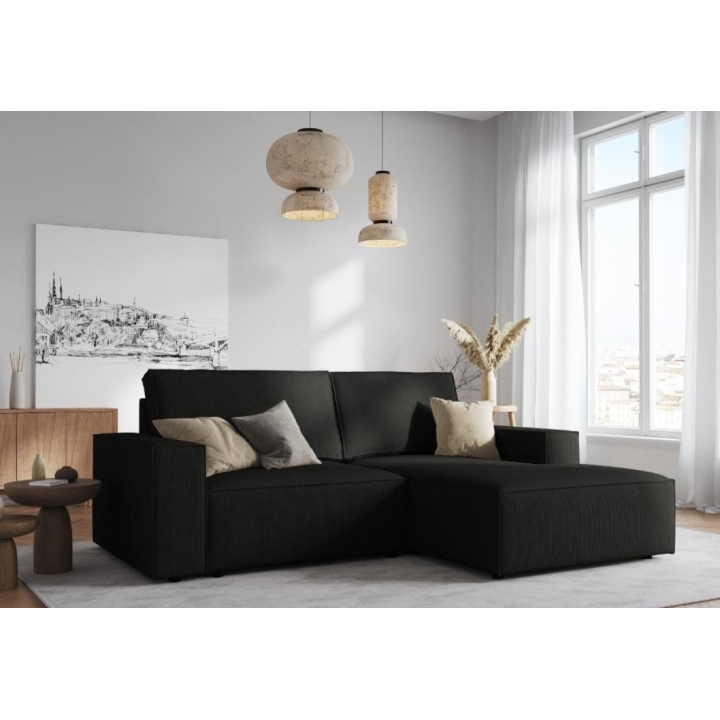 Kompaktowa sofa narożna 3 os. Carlo producenta Milo Casa to mebel o wymiarach: 229 cm szerokości, 90 cm wysokości, 166 cm głębokości, który charakteryzuje się niezwykłą wygodą. Ten modny narożnik jest dostępny w 8 kolorach: Beżowy, Jasny Niebieski, Ciemny Niebieski, Szary, Jasny Szary, Żółty, Czarny oraz Butelkowy Zielony, dzięki czemu będzie pasować do każdego rodzaju wnętrz. Wypełnienie siedziska wykonano z połączenia sprężyny falistej oraz pianki poliuretanowej o wysokiej elastyczności, a oparcie wypełniono silikonem. Wyróżnikiem sofy są jej niewielkie wymiary, które sprawią, że zmieści się w większości pomieszczeń. Mebel został obity sztruksową tkaniną, o matowej strukturze wykonanej z wąskich pasków o szerokości 3mm, która zapewnia najwyższy komfort wypoczynku, a dodatkowo jest miła w dotyku. Wysokiej jakości materiały wykorzystane do produkcji mebla sprawiają, że sofa narożna Carlo charakteryzuje się dużą wytrzymałością i trwałością. Mebel jest osadzony na niskich, wykonanych z tworzywa nogach. Leżanka może być wyprodukowana z lewej lub z prawej strony, dzięki czemu można lepiej dostosować mebel do swojego mieszkania.