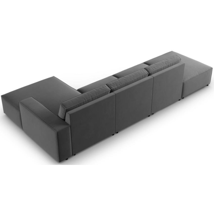 Stylowa sofa narożna 5 os. Carlo producenta Milo Casa to mebel o wymiarach: 341 cm szerokości, 90 cm wysokości, 166 cm głębokości, który charakteryzuje się niezwykłą wygodą. Ten modny narożnik jest dostępny w 7 kolorach: Jasny Beżowy, Królewski Niebieski, Szary, Jasny Szary, Żółty, Czarny oraz Butelkowy Zielony, dzięki czemu będzie pasować do każdego rodzaju wnętrz. Wypełnienie siedziska wykonano z połączenia sprężyny falistej oraz pianki poliuretanowej o wysokiej elastyczności, a oparcie wypełniono silikonem. Wyróżnikiem sofy jest jej nietypowy, futurystyczny kształt — bryła nie posiada jednego oparcia, dzięki czemu zyskuje na przestronności. Mebel został obity aksamitną tkaniną, jedwabistą i miłą w dotyku o delikatnym połysku, która zapewnia najwyższy komfort wypoczynku, a dodatkowo jest odporna na ścieranie. Test Martindale’a na poziomie 50 000 cykli. Wysokiej jakości materiały wykorzystane do produkcji mebla sprawiają, że sofa narożna Carlo charakteryzuje się dużą wytrzymałością i trwałością. Mebel jest osadzony na niskich, wykonanych z tworzywa nogach. Leżanka może być wyprodukowana z lewej lub z prawej strony, dzięki czemu można lepiej dostosować mebel do swojego mieszkania.