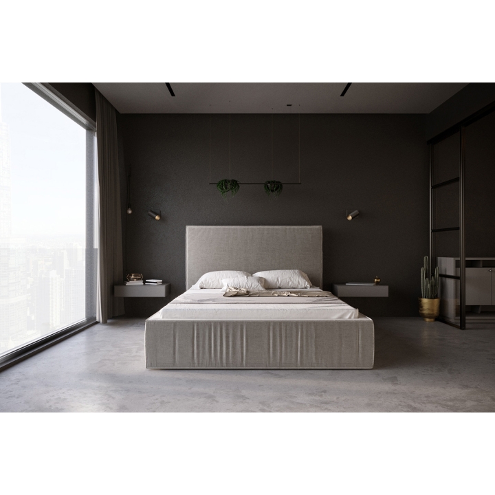 Łóżko tapicerowane 81249 RMT to mebel o wyjątkowym designie, Jego elegancka forma połączoną z prostota tworzy kompozycję , która czyni mebel piękną ozdobą każdej sypialni. Ponadto zapewnia również wygodne miejsce, w którym można wypocząć po ciężkim dniu pracy oraz zrelaksować się wraz z ulubioną książką. Korpus łóżka został ozdobiony dekoracyjnymi marszczeniami, które nieco urozmaicają formę. Mebel wyposażony jest w stelaż oparty na metalowej ramie oraz zamontowane siłowniki gazowe, które pozwalają w łatwy i sprawny sposób go unieść. Miejsce pod stelażem możesz wykorzystać jako pojemnik na pościel lub inne przedmioty. Łóżko nie jest standardowo otapicerowane. Należy je ubrać w tkaninę i naciągnąć na rzepy. Powierzchnia spania równa jest 140 x 200 cm.