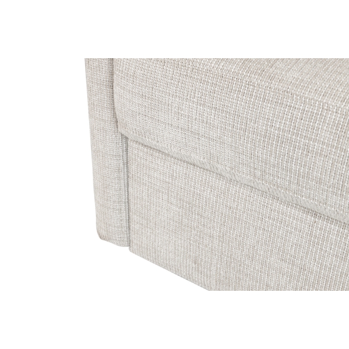 Całość obito tkaniną Baltimore Greige, która wyróżnia się przyjemną w dotyku fakturą oraz podwyższoną odpornością na codzienne użytkowanie. Struktura materiału subtelnie podkreśla nowoczesny charakter mebla, a jednocześnie zapewnia trwałość na lata. To propozycja dla osób ceniących wyważone połączenie estetyki i solidnego wykonania.
