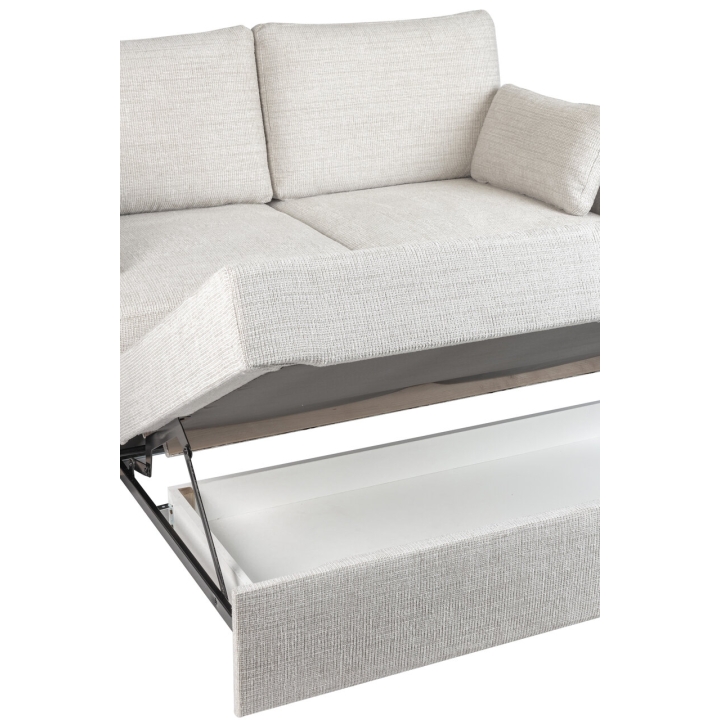 Sofa Roco została wyposażona w pojemnik na pościel, który ułatwia przechowywanie dodatkowych tekstyliów. Dzięki temu w jednym meblu połączono miejsce do siedzenia, spania oraz praktyczną przestrzeń do organizacji. To rozwiązanie szczególnie docenią użytkownicy, którzy potrzebują oszczędności miejsca.